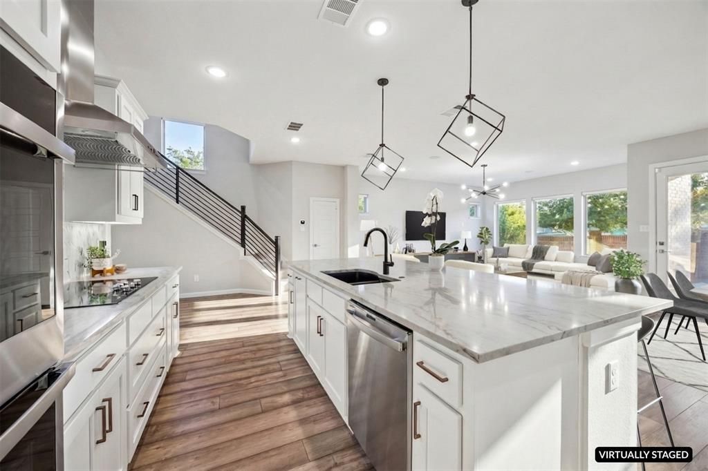 This custom, open-concept home offers the perfect blend of convenience and tranquility in the heart of Dallas-Fort Worth. Situated on the largest corner lot in the community, the property features expansive side and backyard space along with an extended patio – ideal for entertaining friends and family. Thoughtfully designed landscaping enhances the outdoor experience, including mature trees, shrubbery for enhanced privacy, and professional lighting that creates a serene yet spacious setting.Inside, the home showcases extensive modern upgrades throughout, from wood-style flooring to designer tile, quartz countertops, and elevated finishes in the kitchen and baths. The well-appointed kitchen is equipped with top-of-the-line GE Café appliances and a large island, making it both functional and stylish. Oversized windows paired with custom blinds fill the home with abundant natural light.Upstairs, a smart split-bedroom layout surrounds a cozy family room complete with a dry bar, mini-fridge, built-in media cabinetry, and additional storage. The primary suite offers a relaxing retreat with a spa-inspired en-suite bath featuring a freestanding tub, frameless shower, and a spacious walk-in closet.Residents of the Terraces of Las Colinas enjoy access to community amenities, including walking paths, a playground, and a sand volleyball court. Ideally located with quick access to Highways 114, 161, and 635, and just minutes from both DFW and Love Field airports, as well as premier shopping, dining, Toyota Music Factory, LifeTime Fitness, and a soon-to-be H-E-B, this home delivers both luxury and convenience.Act fast – packed with nearly $75,000 in premium upgrades – this one won't last long.