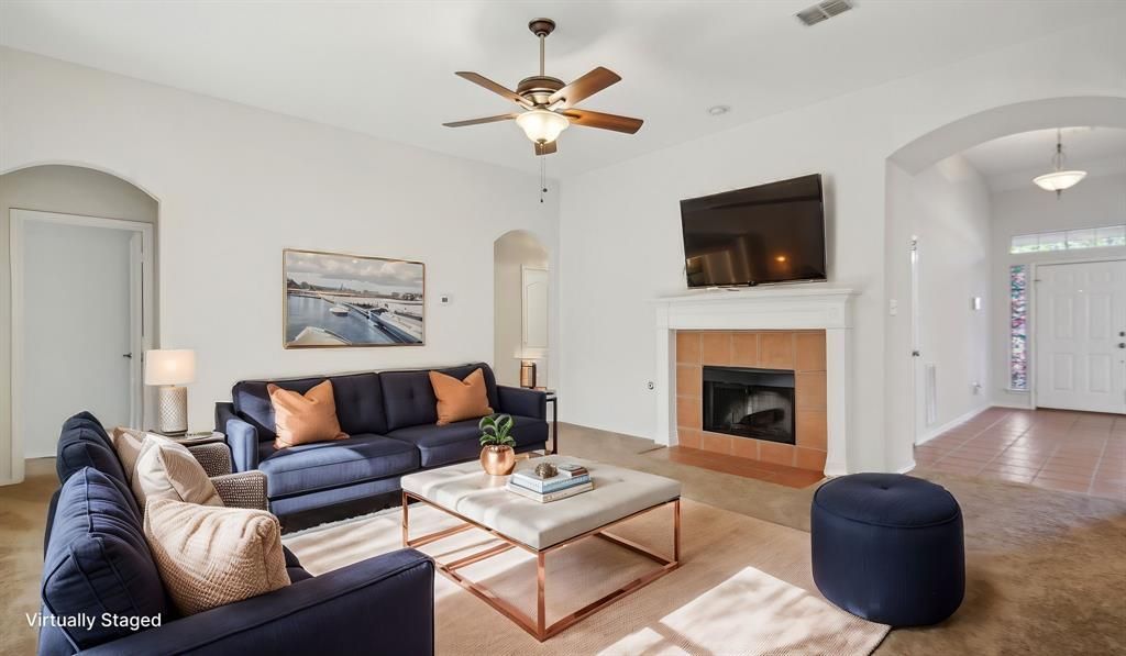 A wonderful place to truly feel at home! One of the owners’ favorite features is the spacious primary suite, complete with a cozy sitting area—perfect for unwinding with a good book or relaxing in the evening. Outdoor living is just as enjoyable, with a large covered patio ideal for BBQs, outdoor dining, or creating memorable moments with family and friends. This inviting 4-bedroom, 2-bath home offers a thoughtfully designed layout. The open-concept living and dining areas create a warm, welcoming atmosphere, while the family room flows seamlessly into the kitchen and breakfast area—an ideal setup for everyday living and family gatherings. The kitchen boasts quartz countertops, abundant cabinet space, and a conveniently located breakfast nook. La casa perfecta para los suyos. Contáctanos para verla!