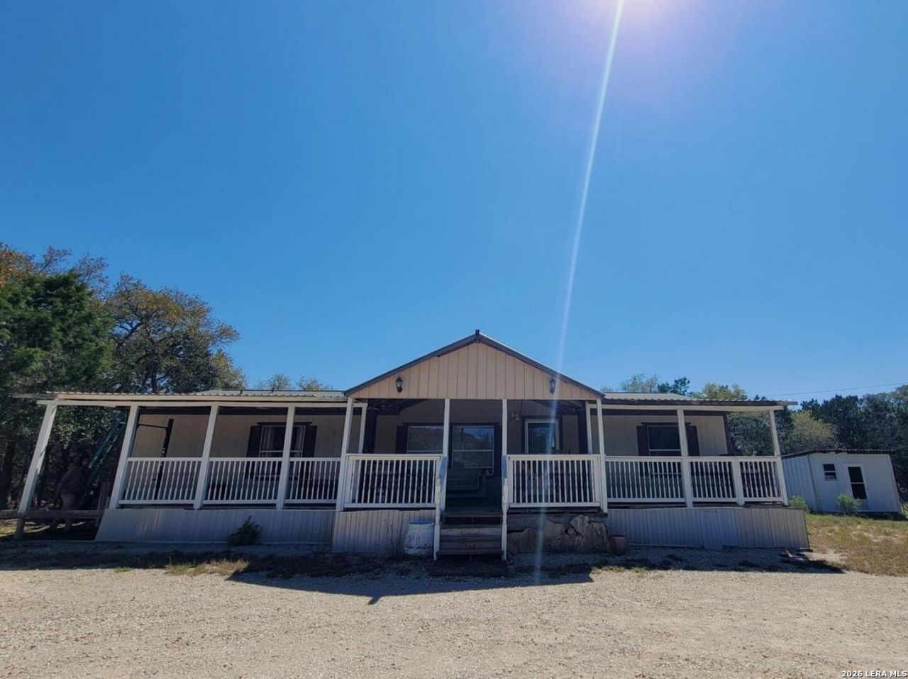 Discover the perfect blend of privacy, space, and opportunity with this beautiful 5-acre rural property featuring a well-maintained 2006 Palm Harbor manufactured home offering approximately 1,600 square feet of comfortable living space. This spacious home includes 4 bedrooms, 2 full bathrooms, and a dedicated office area - ideal for working from home, homeschooling, or creating your own hobby space. High speed fiber internet from BEC makes working from home, school, and gaming ultra fast! The homes open layout provides functional living with wood-burning stove and room for everyone. Step outside and take in the peaceful surroundings from the full-length covered front porch, perfect for enjoying morning coffee while watching the sunrise over the rolling hills. A secondary side porch with exterior access adds convenience and flexibility for guests or everyday living. Located in a gated community with Medina Lake access (lake currently dry due to minimal rainfall) Low HOA fees, Attractive 1.375% tax rate! Incredible potential to enhance views with a second-story addition (on the existing home or a future structure), capturing approximately 30 feet of elevation and even more breathtaking Hill Country scenery. Improvements include a water well, septic system, and a water softener installed approximately three years ago. Outdoor features include a 30 x 50 concrete basketball court with an adjustable goal. An automatic shooting machine is negotiable. Additional exterior features include a chicken coop, three storage sheds, and raised garden beds. With ample space for additional improvements, a workshop, barn, or future build, this property offers flexibility for your vision. Whether youre looking for peaceful country living, room to expand, or long-term investment potential, this is an opportunity you dont want to miss.